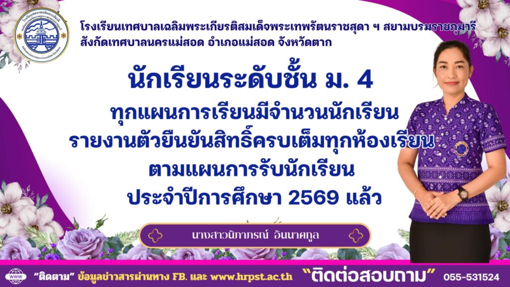 ประชาสัมพันธ์ ประกาศ….โรงเรียนเทศบาลเฉลิมพระเกียรติสมเด็จพระเทพรัตนราชสุดา ฯ สยามบรมราชกุมารี Read More » 07/04/2026