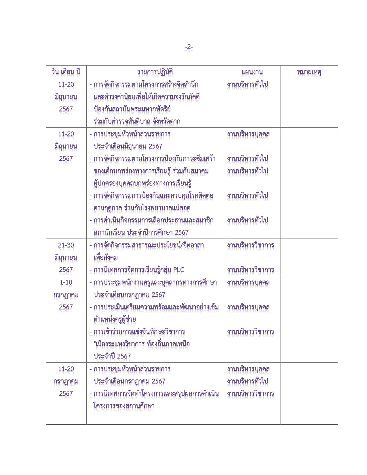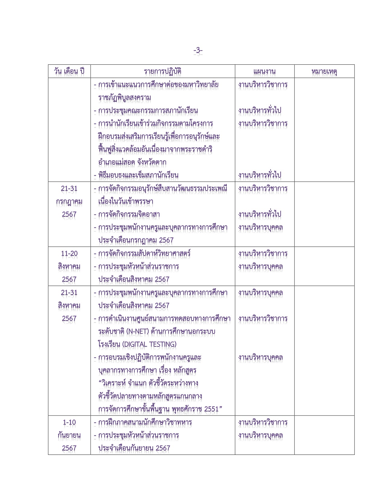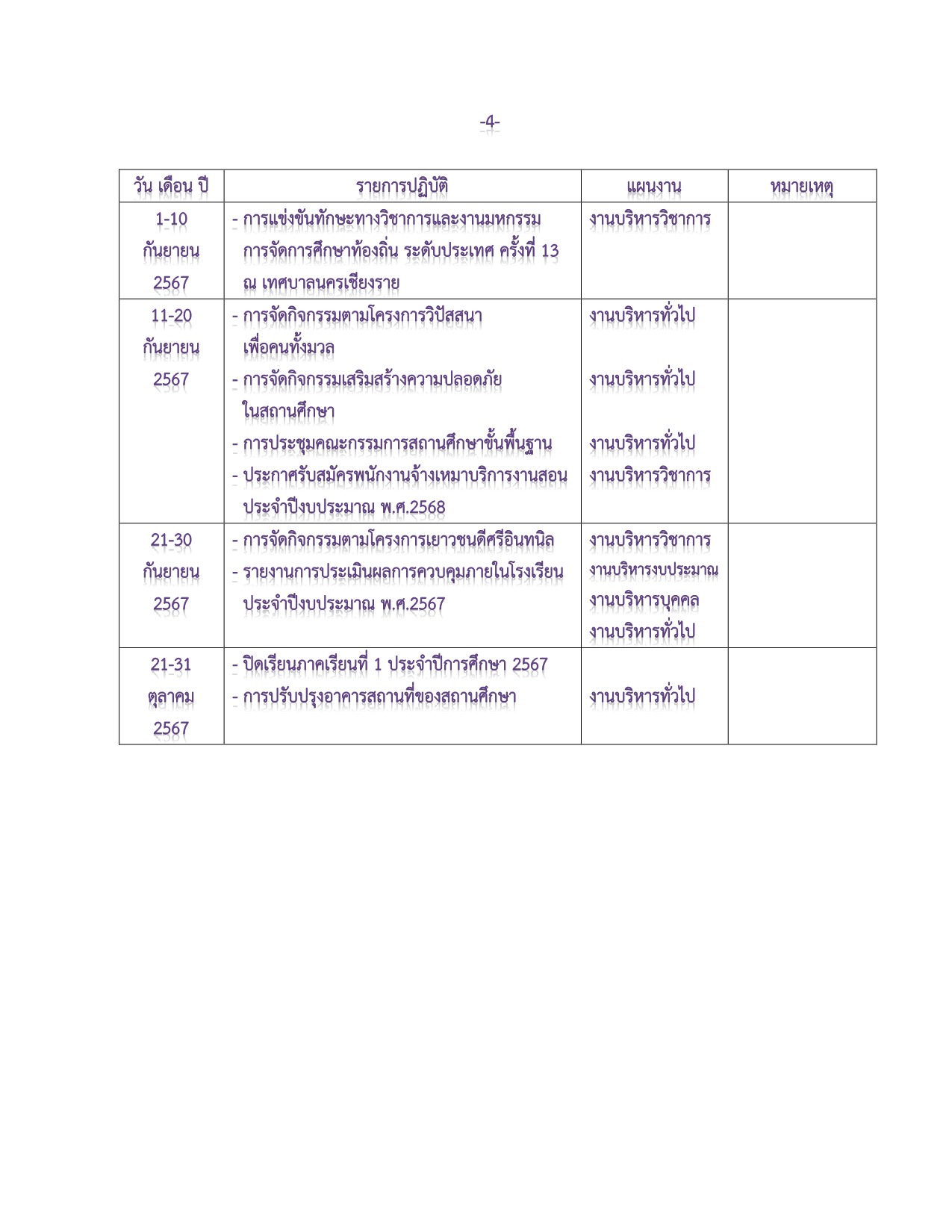 ปฏิทินการบริหารงาน ประจำปีการศึกษา 2567