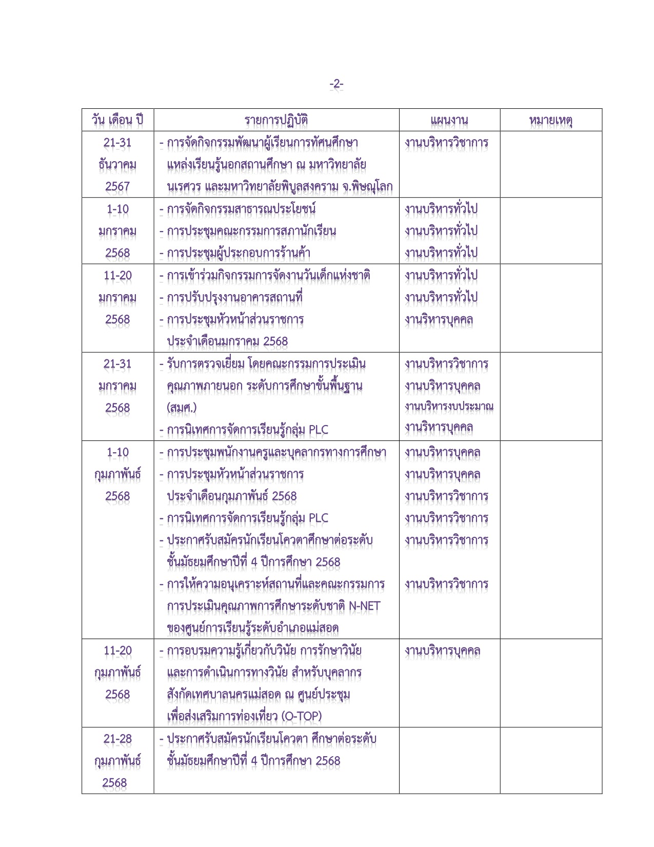 ปฎิทินการบริหารงาน