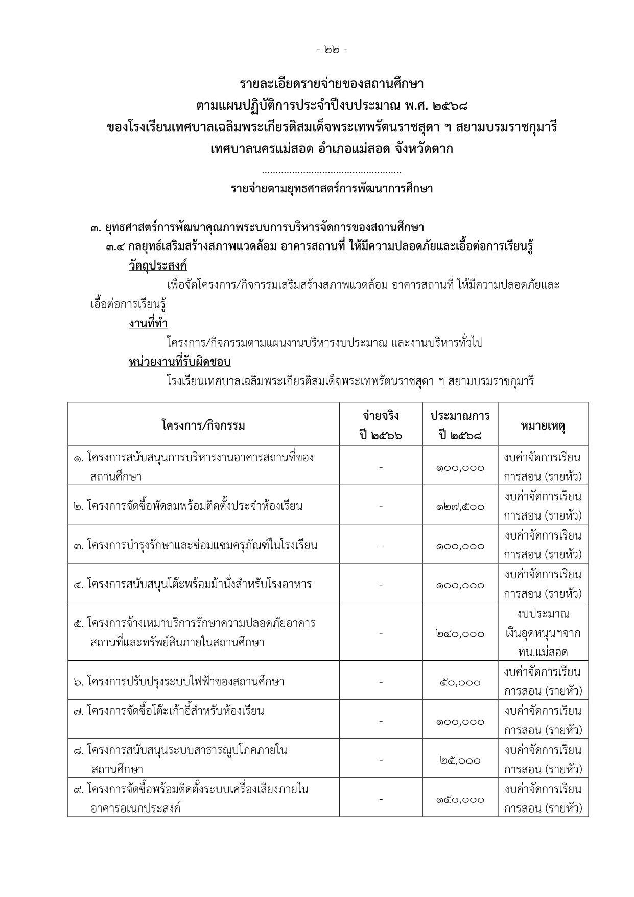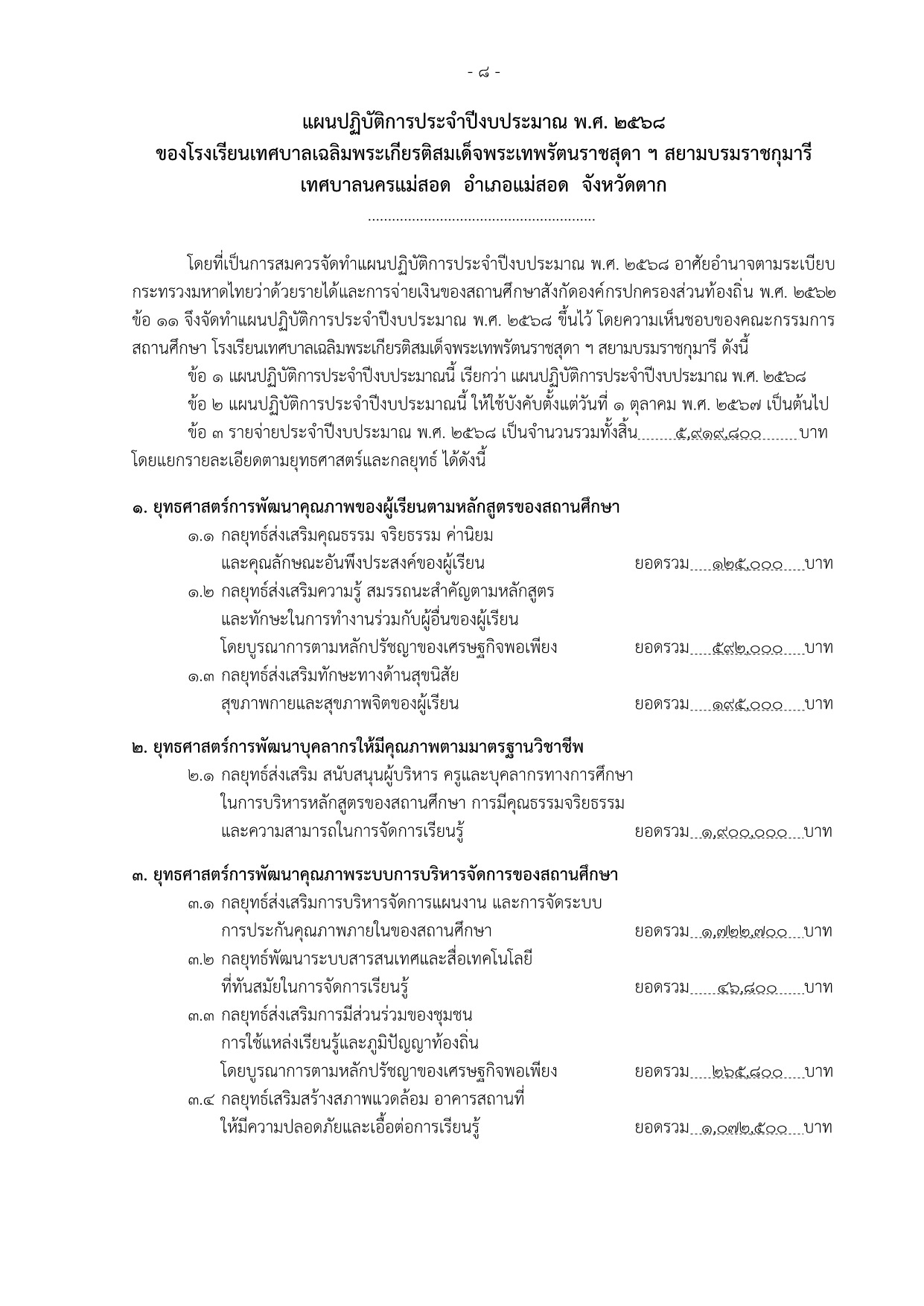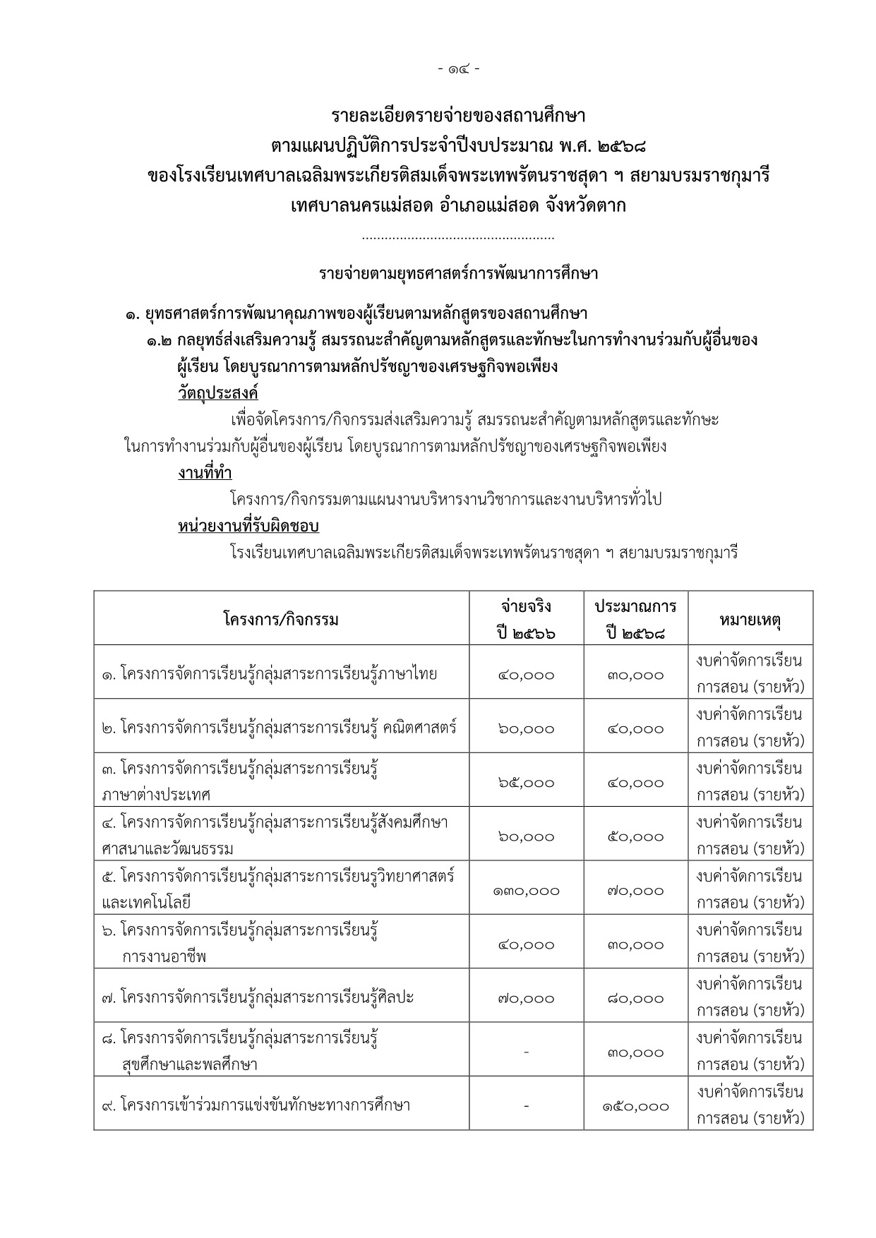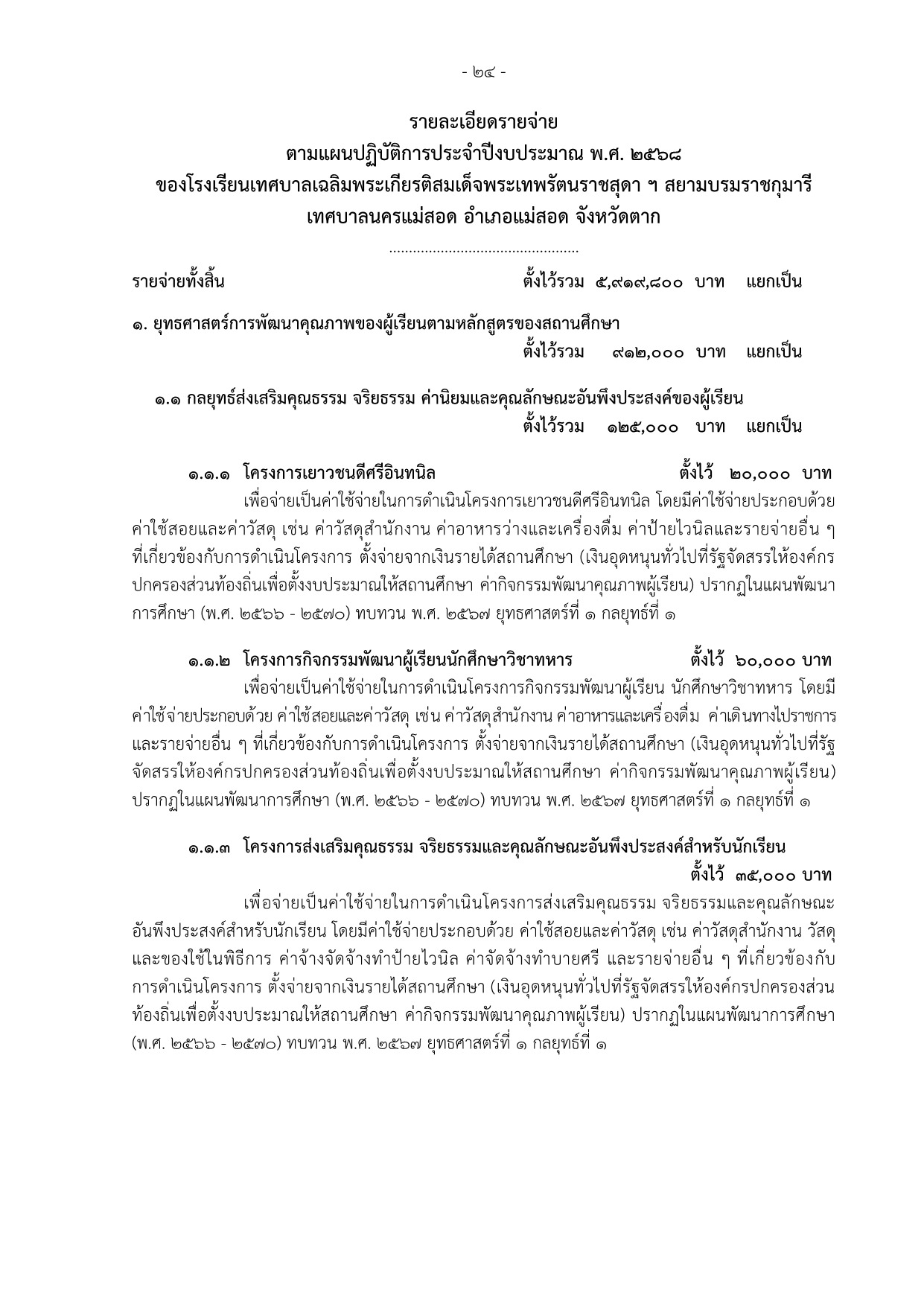 แผนปฏิบัติการประจำปีงบประมาณ พ.ศ. 2568 (ใช้จริง)