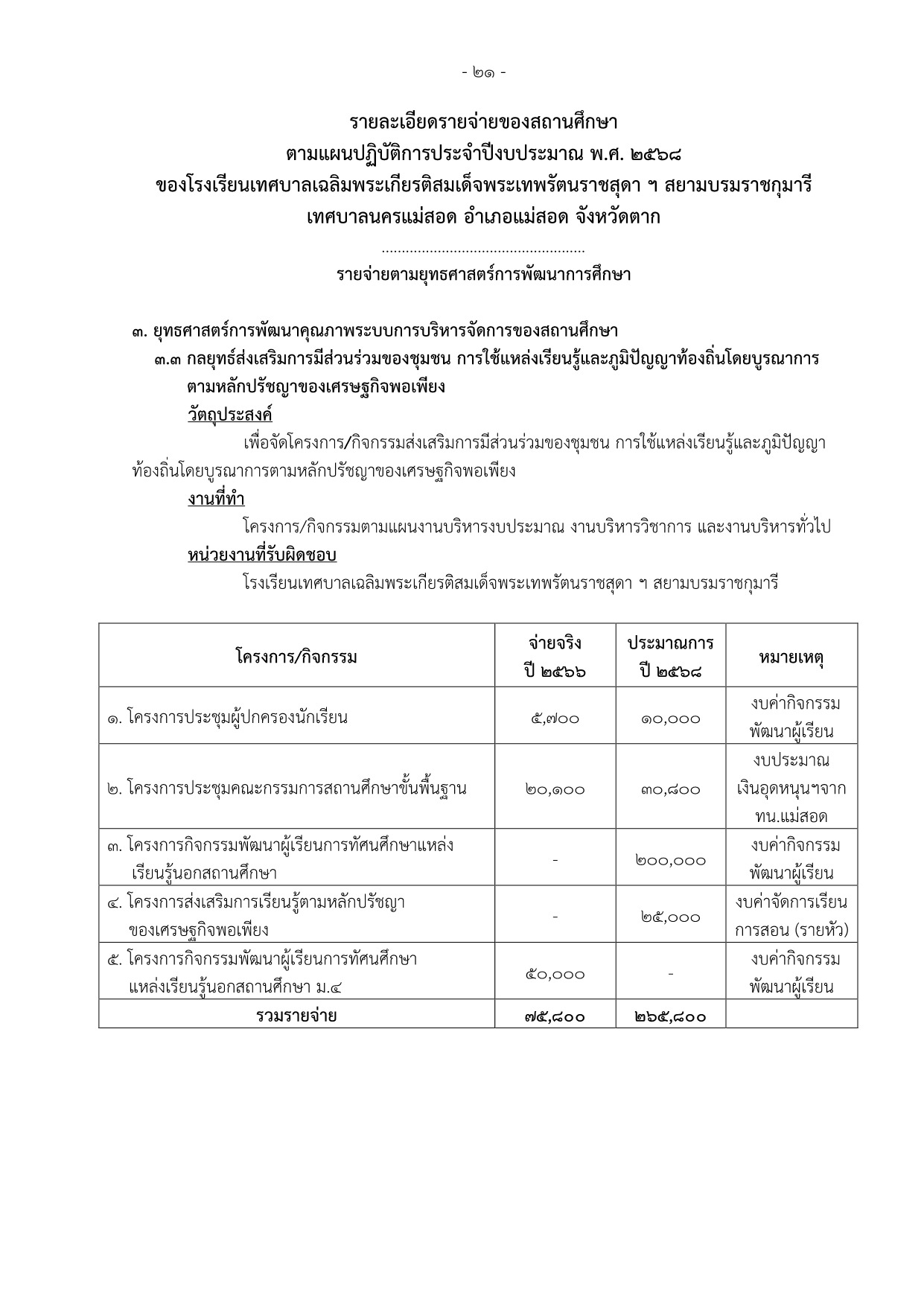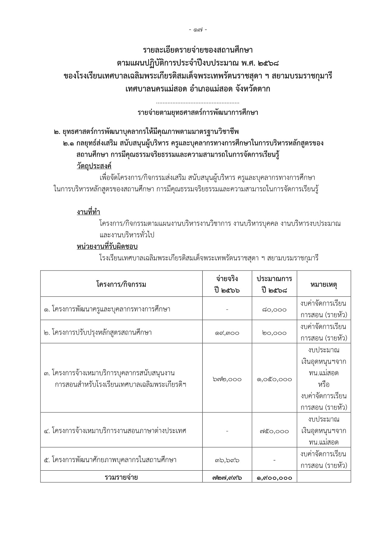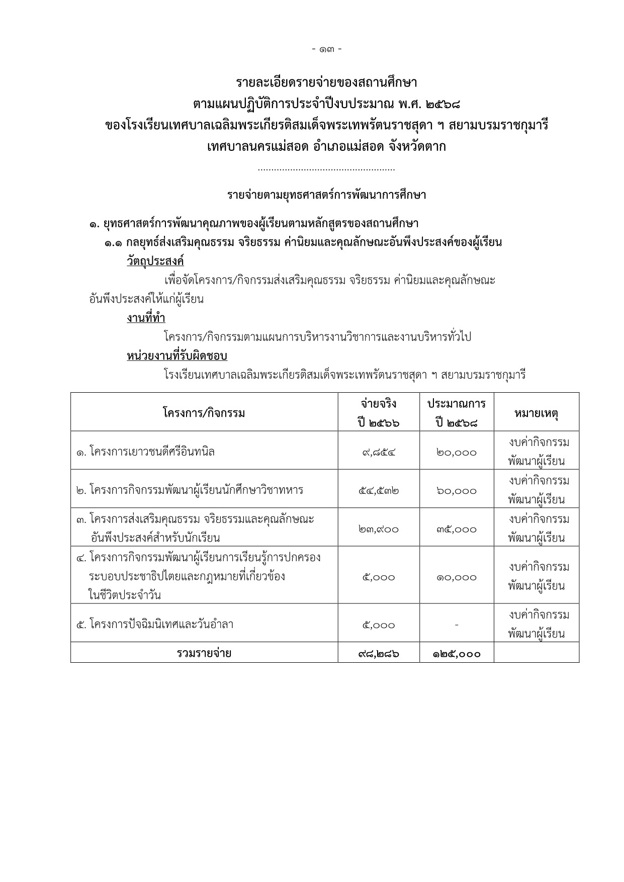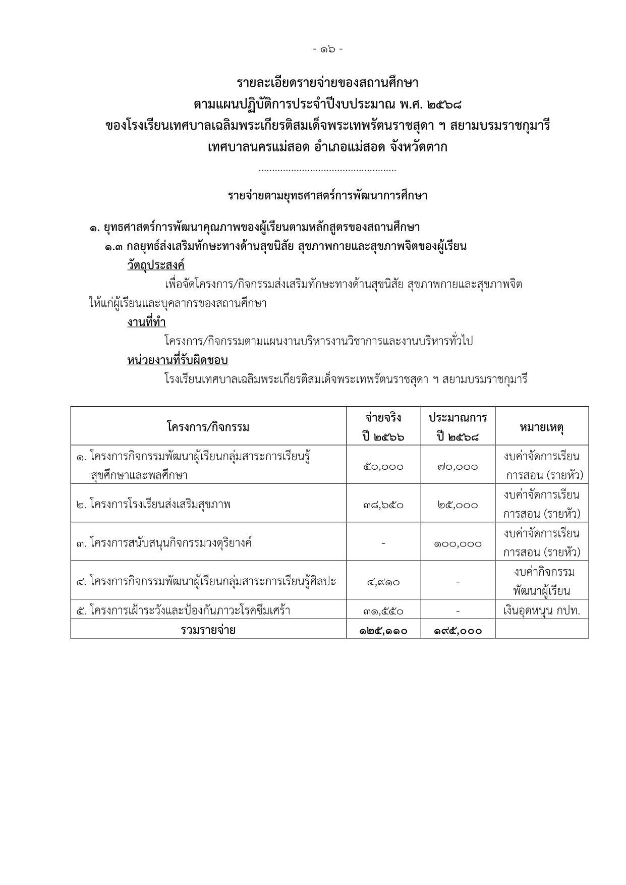 แผนปฏิบัติการประจำปีงบประมาณ พ.ศ. 2568 (ใช้จริง)