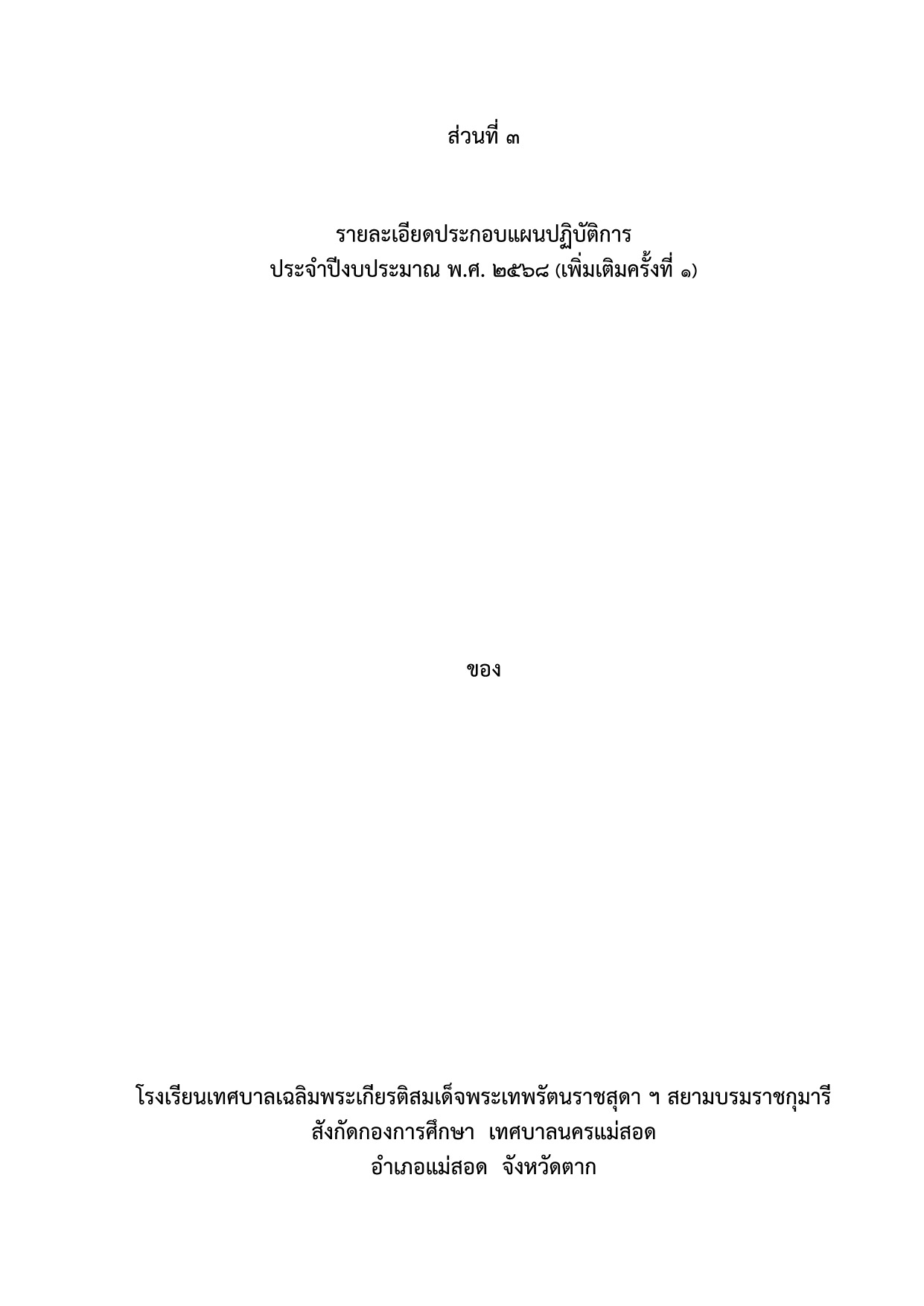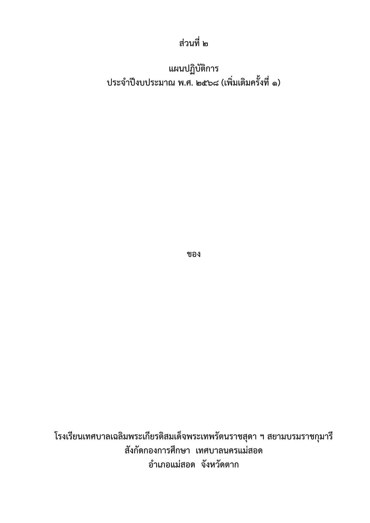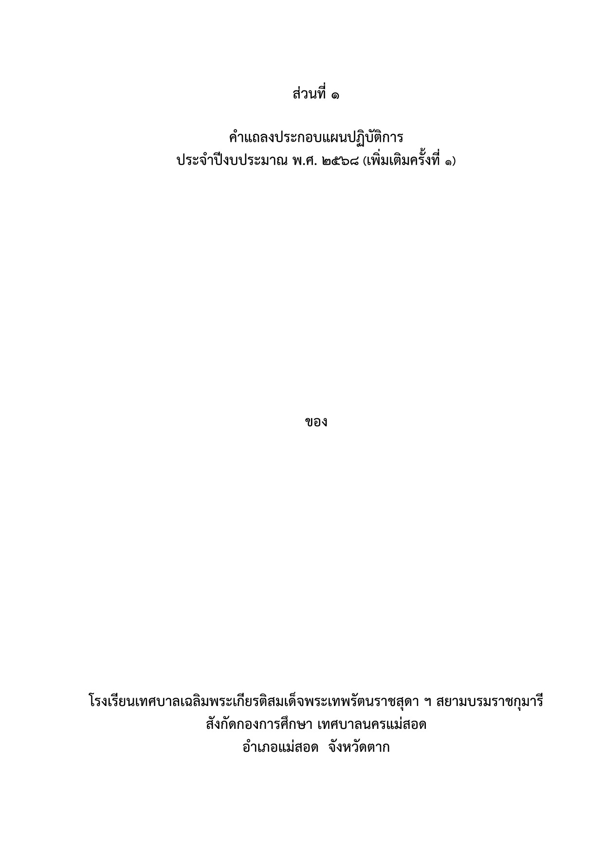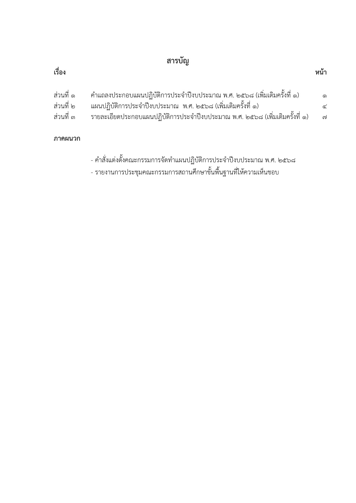 แผนปฏิบัติการประจำปีงบประมาณ พ.ศ. 2568 (เพิ่มเติมครั้งที่ 1) ดาวน์โหลดไฟล์ : แผนปฏิบัติการประจำปีงบประมาณ พ.ศ. 2568 (เพิ่มเติมครั้งที่ 1)