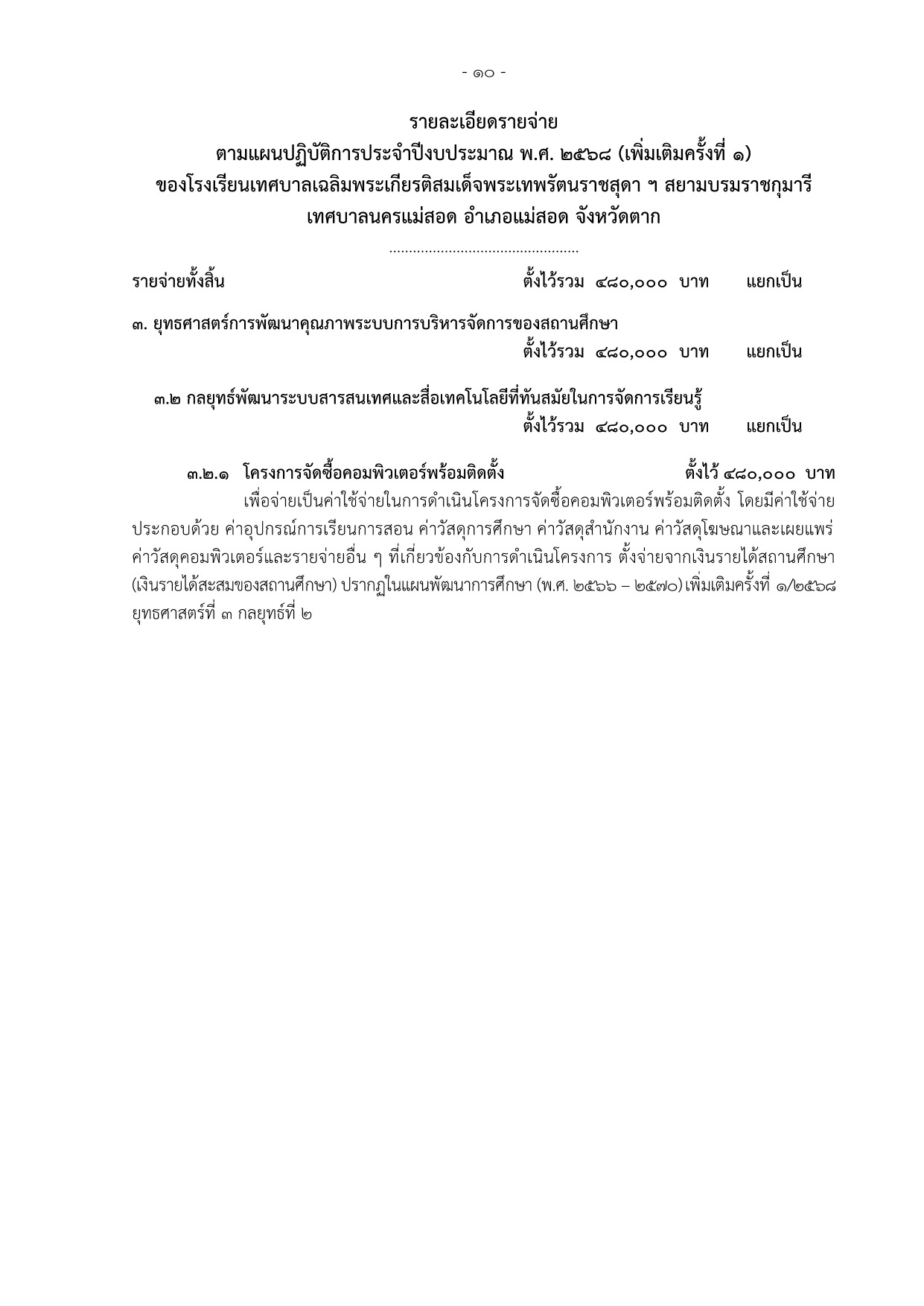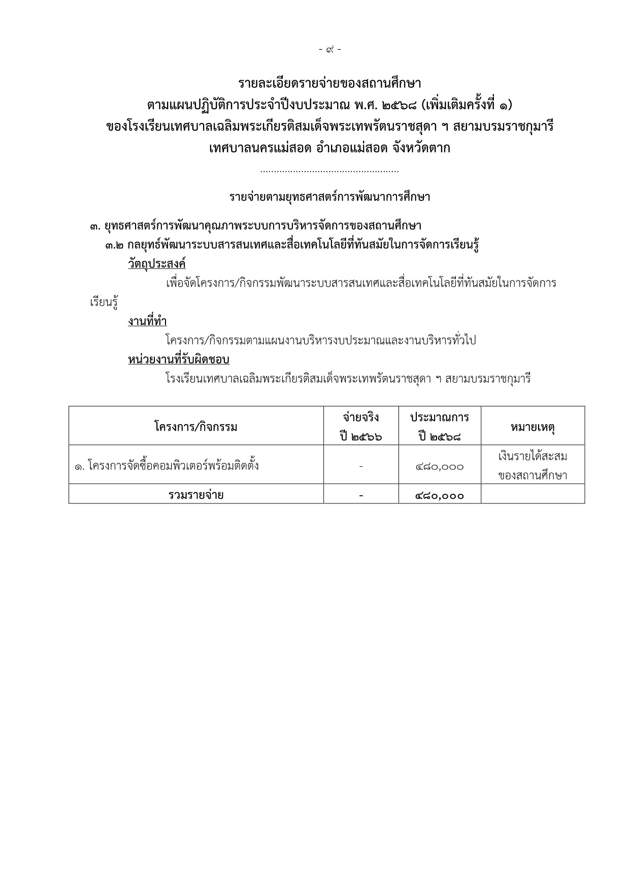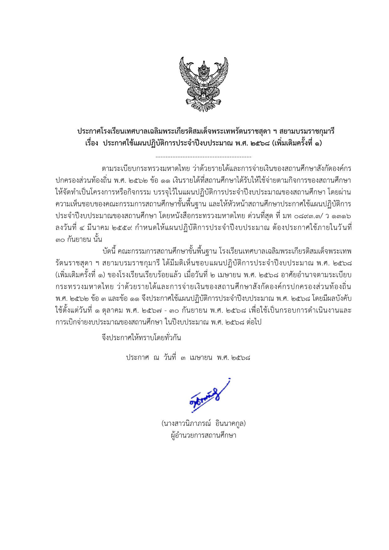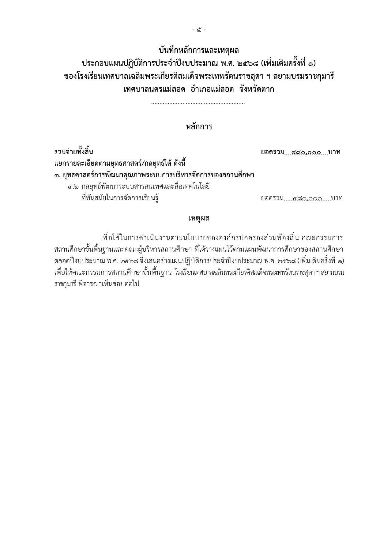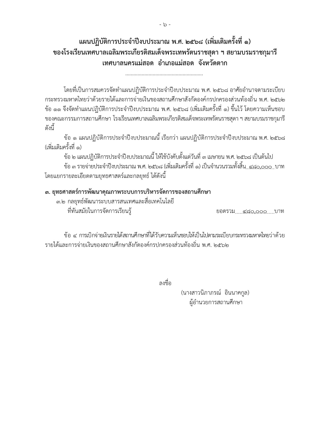 แผนปฏิบัติการประจำปีงบประมาณ พ.ศ. 2568 (เพิ่มเติมครั้งที่ 1) ดาวน์โหลดไฟล์ : แผนปฏิบัติการประจำปีงบประมาณ พ.ศ. 2568 (เพิ่มเติมครั้งที่ 1)