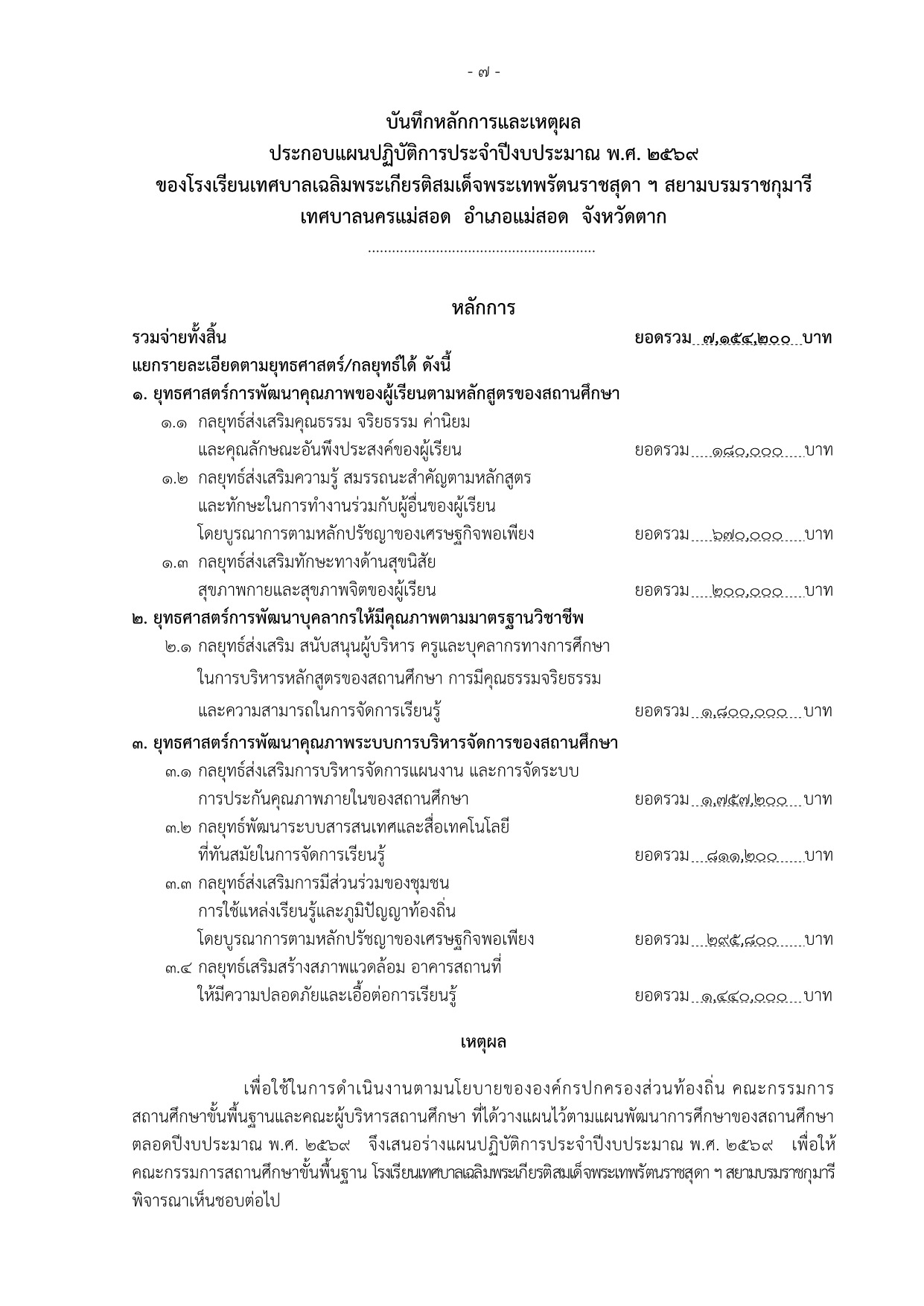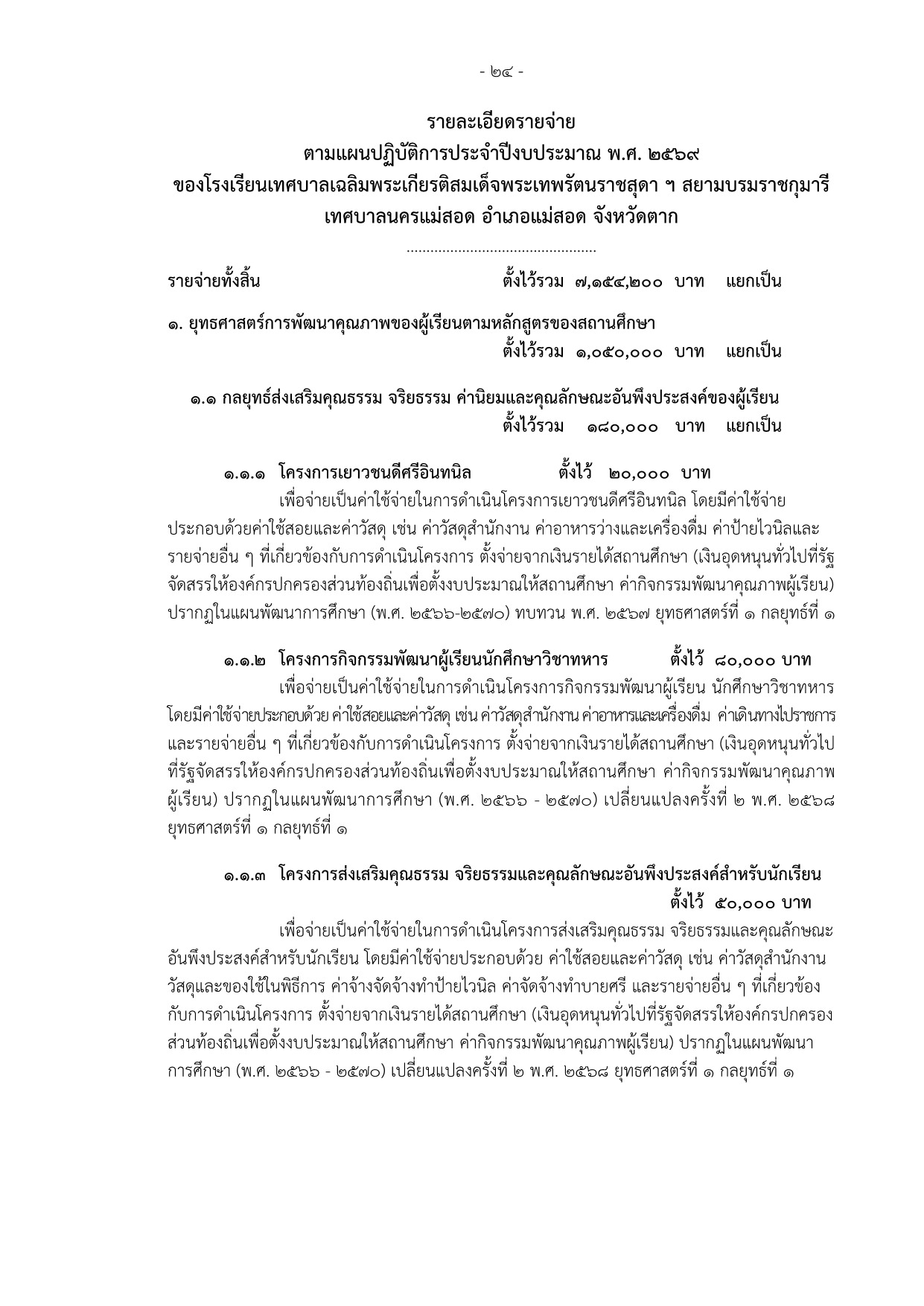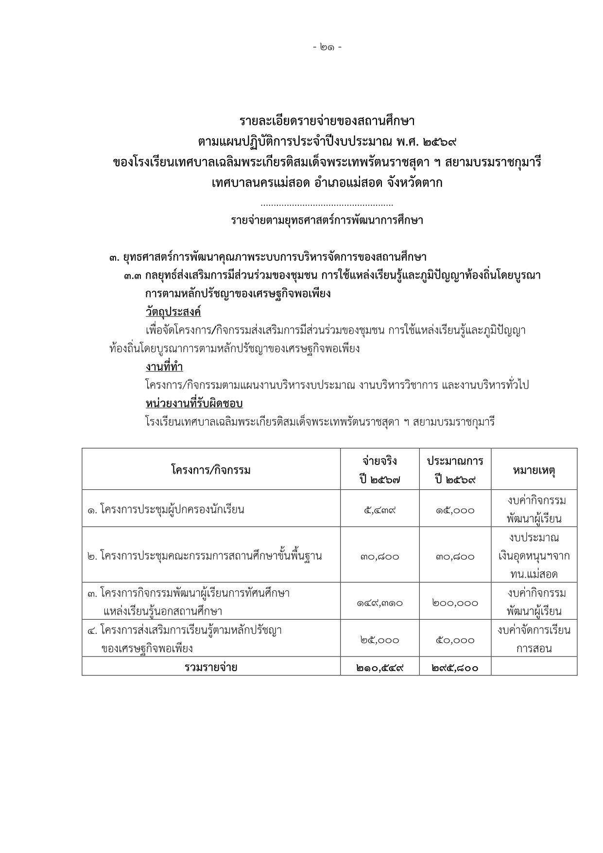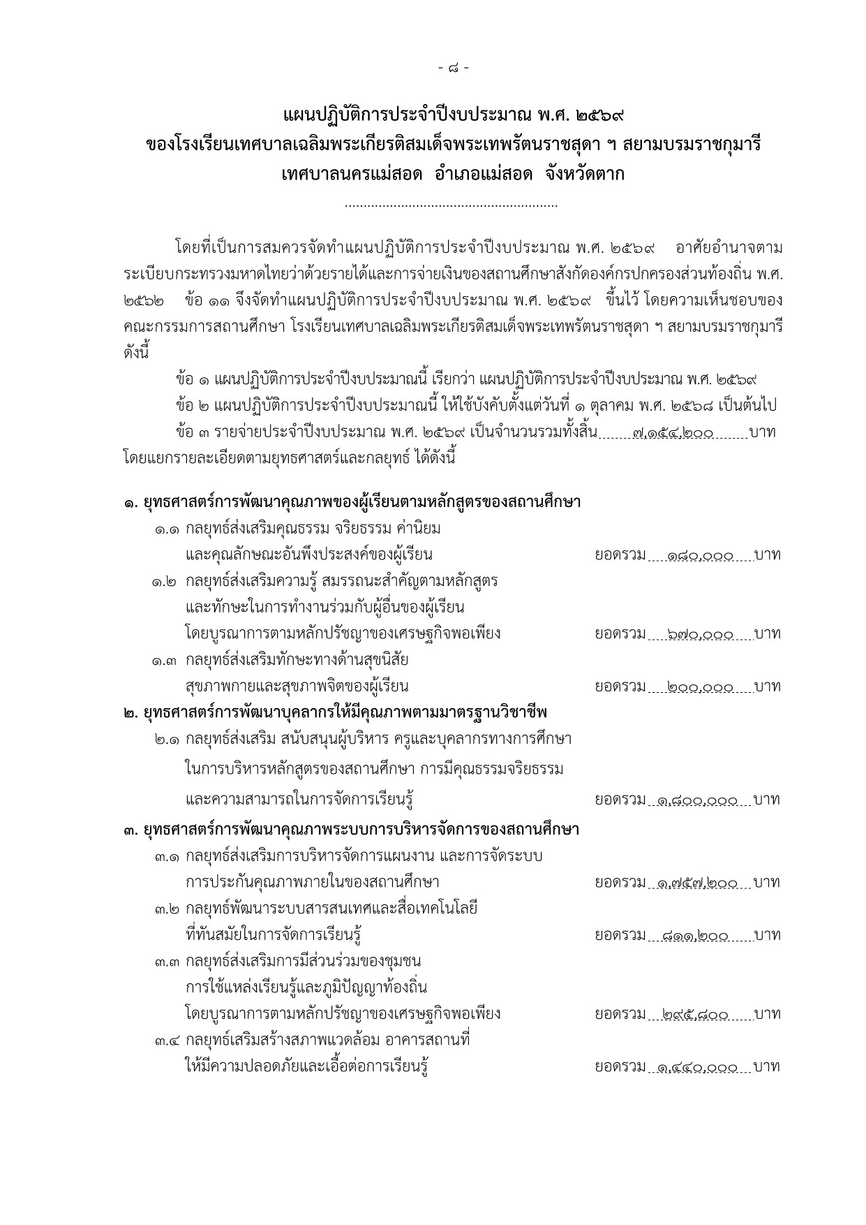 แผนปฏิบัติการประจำปีงบประมาณ พ.ศ. 2569
