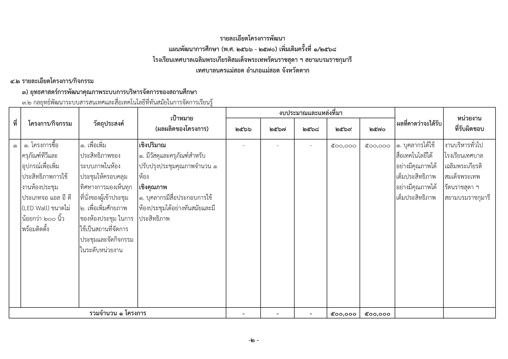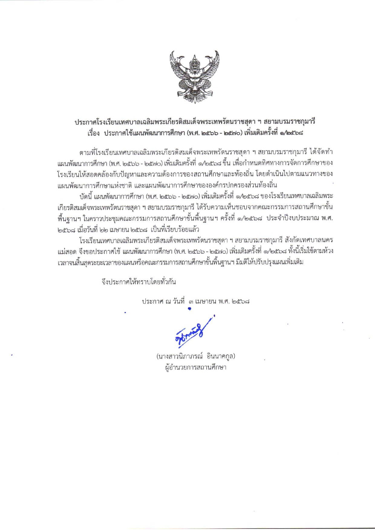 แผนพัฒนาการศึกษา (พ.ศ. 2566 - 2570) เพิ่มเติมครั้งที่ 1-2568 ดาวน์โหลดไฟล์ : แผนพัฒนาการศึกษา (พ.ศ. 2566 - 2570) เพิ่มเติมครั้งที่ 1-2568