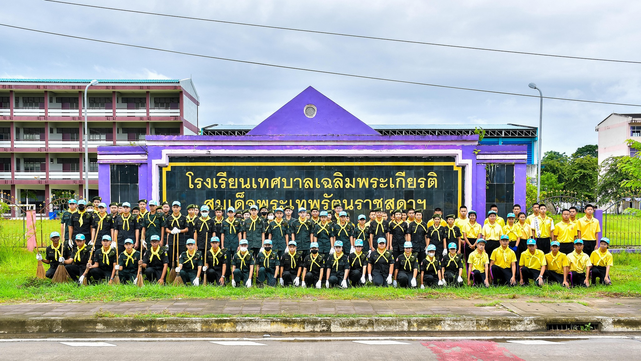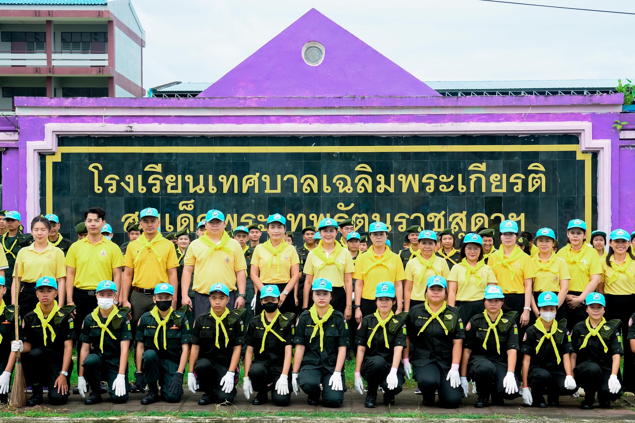 นางสาวนิภาภรณ์ อินนาคกูล ผู้อำนวยการสถานศึกษา นำนักศึกษาวิชาทหาร (นศท.)โรงเรียนเทศบาลเฉลิมพระเกียรติสมเด็จพระเทพรัตนราชสุดา ฯ สยามบรมราชกุมารี ทำกิจกรรมบำเพ็ญสาธารณะประโยชน์ เนื่องในวโรกาส วันเฉลิมพระชนมพรรษา พระบาทสมเด็จพระปรเมนทรรามาธิบดีศรีสินทรมหาวชิราลงกรณ พระวชิรเกล้าเจ้าอยู่หัว รัชกาลที่ 10 พระชนมายุครบ 6 รอบ 72 พรรษา วันที่ 28 กรกฎาคม 2567 โดยนำ นศท.ทำความสะอาดปรับปรุงภูมิทัศน์กำจัดวัชพืชบริเวณรั้วหน้าโรงเรียนและเก็บขยะ ตามกิจกรรมโครงการ “นศท.จิตอาสา” เป็นการปลูกฝังนักศึกษาวิชาทหารชั้นปีที่ 1-3 ปลูกฝังให้นักศึกษาวิชาทหารเป็นเยาวชนมีจิตอาสา รู้จักเสียสละผลประโยชน์ส่วนตัว เพื่อผลประโยชน์ส่วนรวมและมีจิตอาสาทำงานบำเพ็ญประโยชน์ในพื้นที่