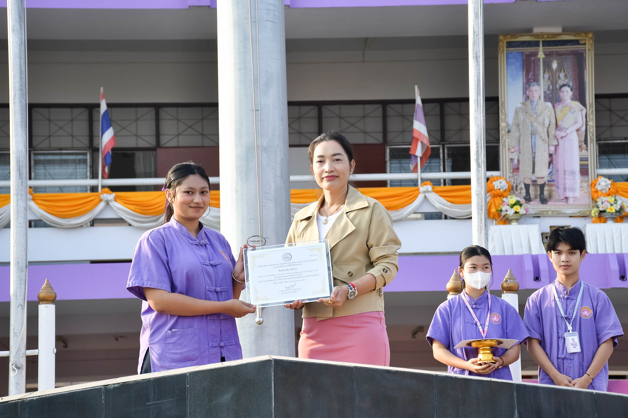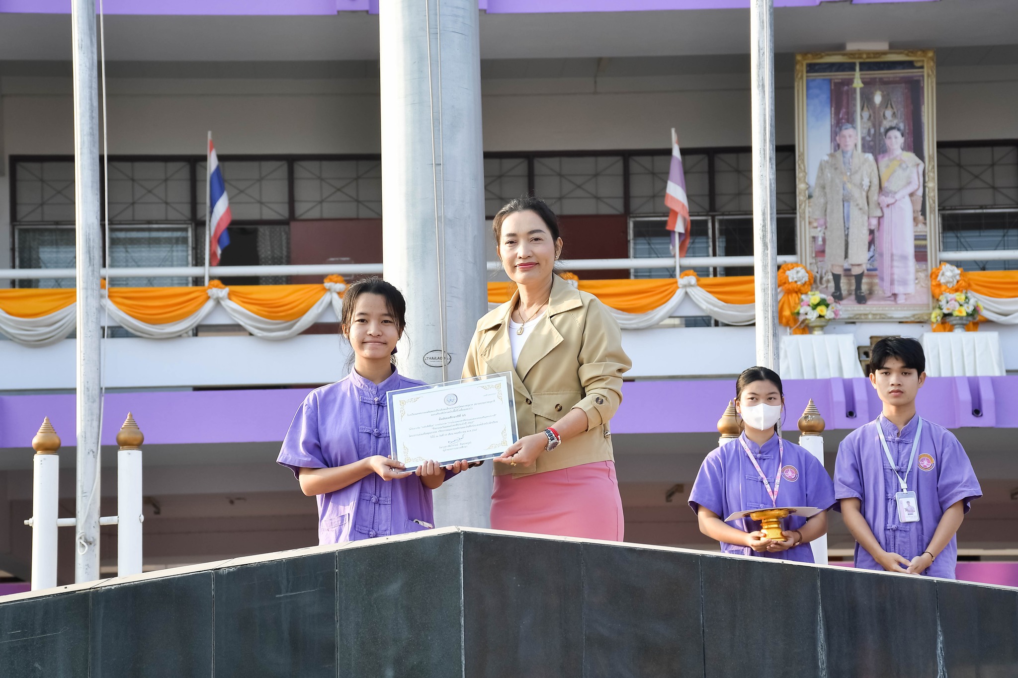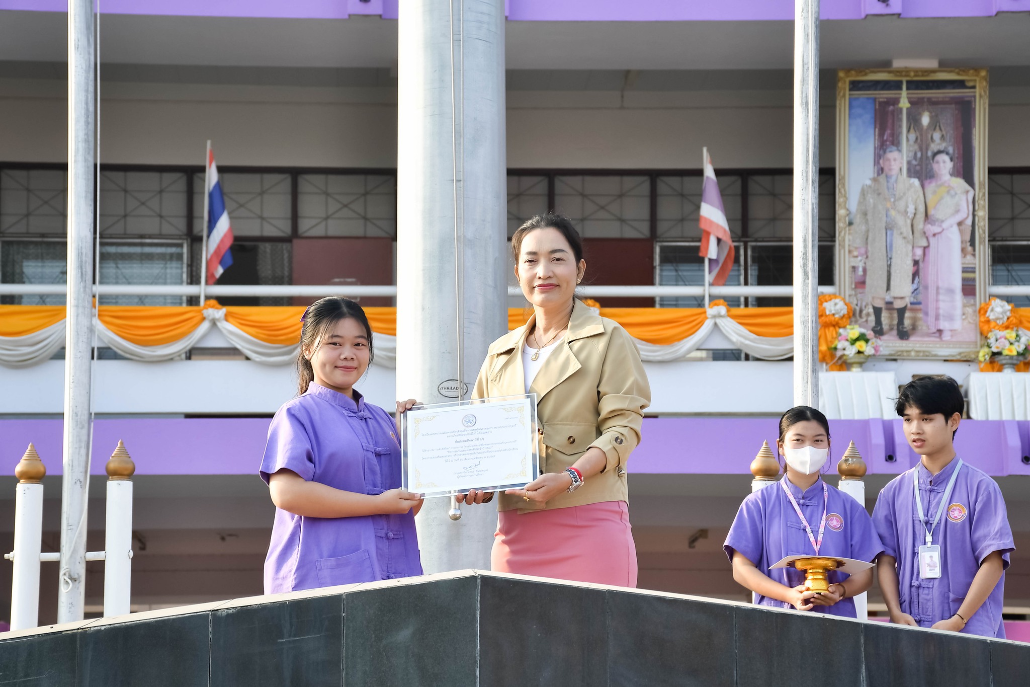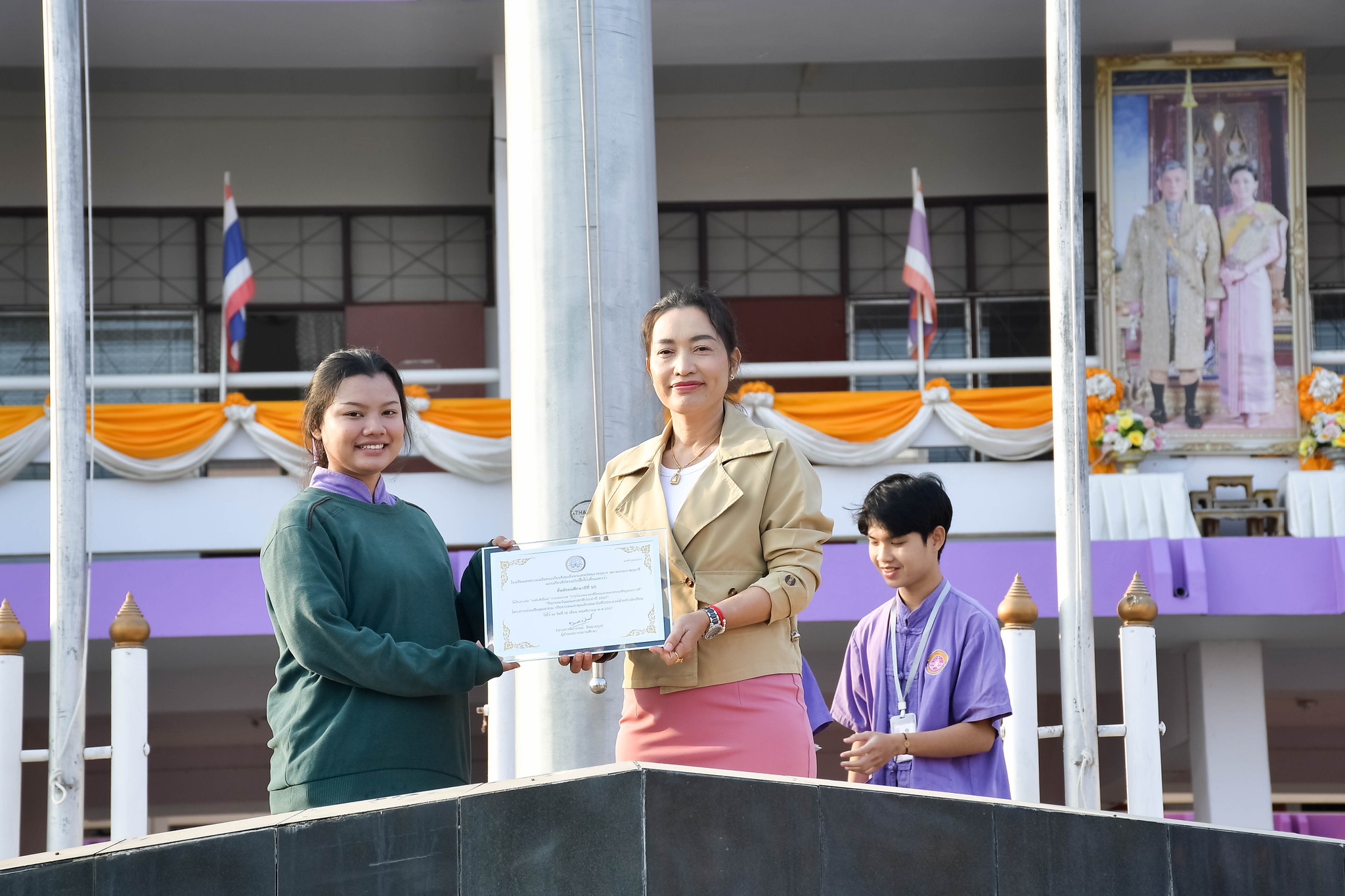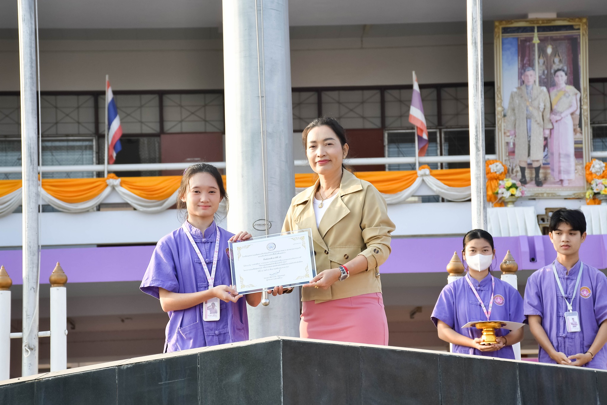 มอบรางวัล "การประกวด “การร้องเพลงชาติไทยและเพลงสรรเสริญพระบารมี”นางสาวนิภาภรณ์ อินนาคกูล ผู้อำนวยการสถานศึกษา โรงเรียนเทศบาลเฉลิมพระเกียรติสมเด็จพระเทพรัตนราชสุดา ฯ สยามบรมราชกุมารี มอบรางวัลให้กับตัวแทนห้องเรียนนักเรียนในผลการตัดสินการประกวด “การร้องเพลงชาติไทยและเพลงสรรเสริญพระบารมี” “กิจกรรมวันแม่แห่งชาติประจำปี 2567” โครงการส่งเสริมคุณธรรม จริยธรรมและคุณลักษณะอันพึงประสงค์สำหรับนักเรียน ณ โรงเรียนเทศบาลเฉลิมพระเกียรติสมเด็จพระเทพรัตนราชสุดา ฯ สยามบรมราชกุมารีเศรษฐชาติ แหงมงาม งานประชาสัมพันธ์สถานศึกษา