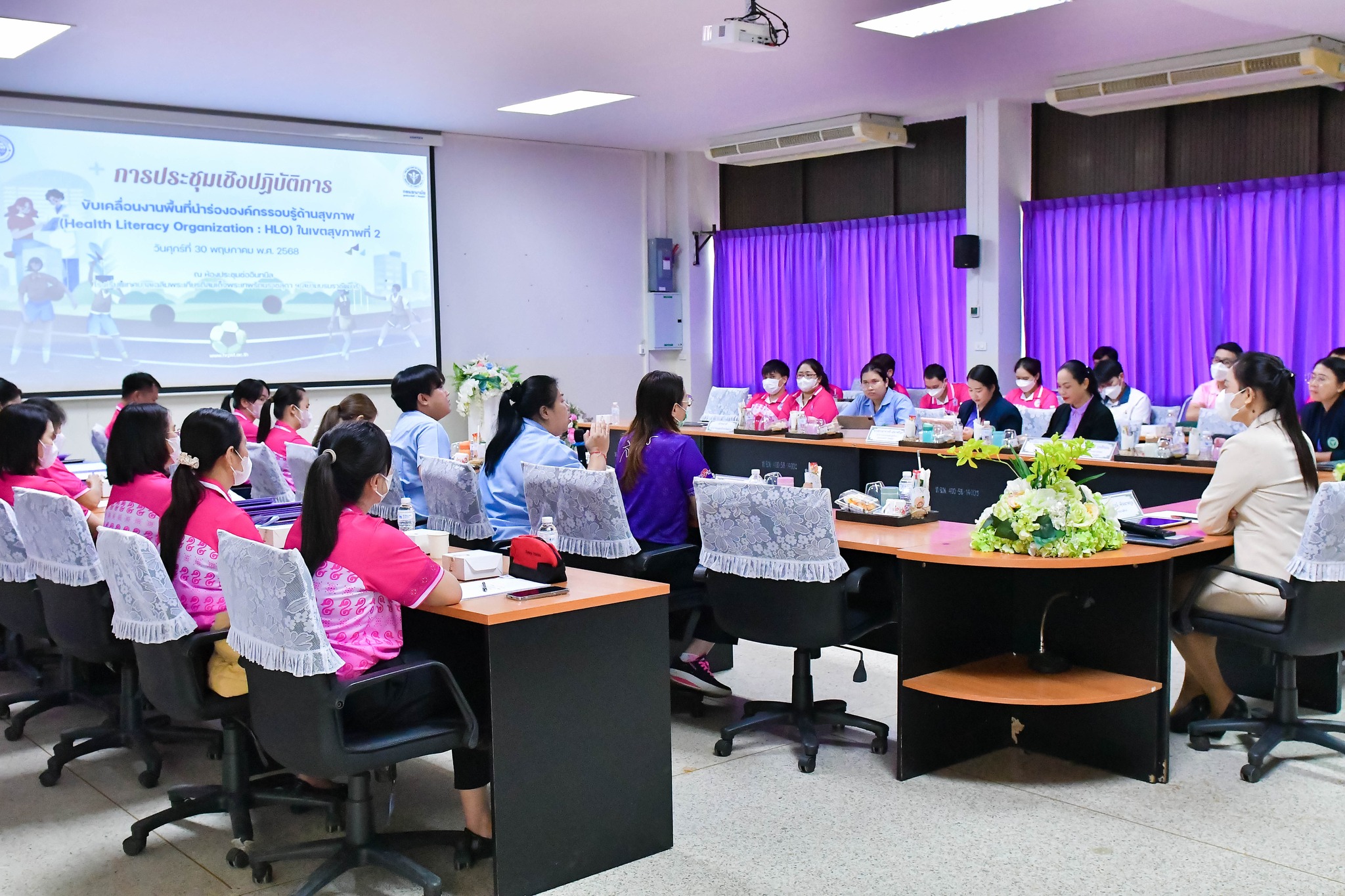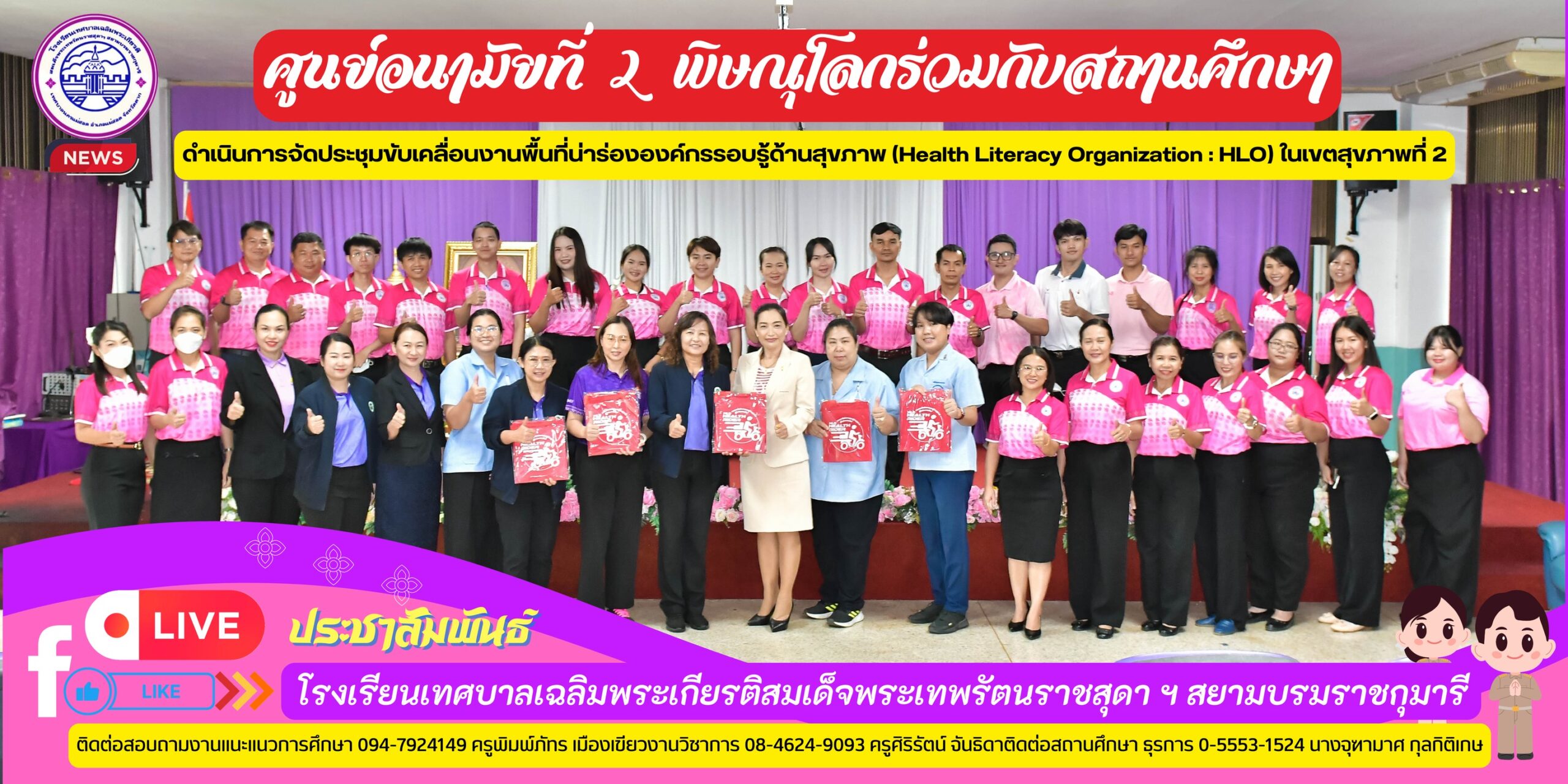 นางสาวนิภาภรณ์ อินนาคกูล ผู้อำนวยการสถานศึกษา ต้อนรับนางสาวไสววรรณ ไผ่ประเสริฐ ผู้อำนวยการศูนย์อนามัยที่ 2 พิษณุโลกพร้อมคณะ และทีมนางสาวสารนิช ชุ่มเย็น พยาบาลวิชาชีพชำนาญการ จากคลินิกชุมชนอบอุ่นเทศบาลนครแม่สอด ร่วมดำเนินการจัดประชุมขับเคลื่อนงานพื้นที่น่าร่ององค์กรรอบรู้ด้านสุขภาพ (Health Literacy Organization : HLO) ในเขตสุขภาพที่ 2 มีวัตถุประสงค์เพื่อขับเคลื่อน การดําเนินงานพื้นที่นําร่ององค์กรรอบรู้ด้านสุขภาพ (Health Literacy Organization : HLO) ในเขตสุขภาพที่ 2 และแลกเปลี่ยนเรียนรู้ผลการดําเนินงาน นวัตกรรม พื้นที่นําร่องด้านการส่งเสริมสุขภาพ และอนามัยสิ่งแวดล้อม เขตสุขภาพที่ 2 โดยในปีงบประมาณ 2568 โรงเรียนเทศบาลเฉลิมพระเกียรติสมเด็จพระเทพรัตนราชสุดา ฯ สยามบรมราชกุมารี อำเภอแม่สอด จังหวัดตาก ได้รับคัดเลือกให้เป็นพื้นที่นําร่องในการขับเคลื่อนการดําเนินงานๆประเด็น "พัฒนาศักยภาพและทักษะการดูแลสุขภาพเบื้องต้นของครูและนักเรียนภายในสถานศึกษา"