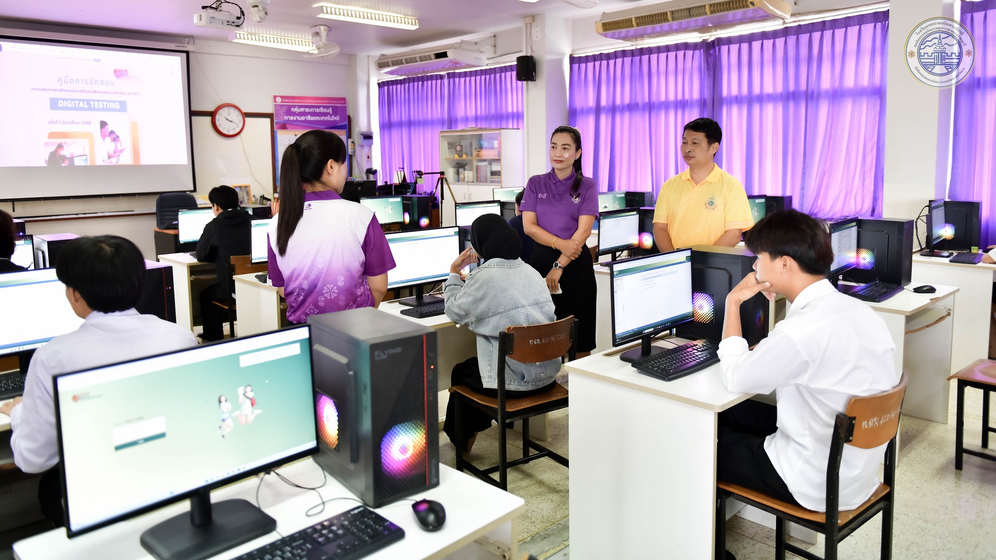 สนามสอบการทดสอบทางการศึกษาระดับชาติด้านการศึกษานอกระบบโรงเรียน (N-NET) ศูนย์สอบรงเรียนเทศบาลเฉลิมพระเกียรติฯ สกร.ประจำจังหวัดตากนางสาวนิภาภรณ์ อินนาคกูล ผู้อำนวยการสถานศึกษา โรงเรียนเทศบาลเฉลิมพระเกียรติสมเด็จพระเทพรัตนราชสุดา ฯ สยามบรมราชกุมารี สังกัดเทศบาลนครแม่สอด จังหวัดตาก พร้อมนางสาวศิริรัตน์ จันธิดา หัวหน้างานฝ่ายวิชาการ ตรวจเยี่ยมสนามสอบทางการศึกษาระดับชาติด้านการศึกษานอกระบบโรงเรียน (N-NET) Digital Testing ครั้งที่ 1 ปีการศึกษา 2568 ด้วยระบบคอมพิวเตอร์ จัดให้มีการสอบในวันเสาร์ที่ 23 วันอาทิตย์ที่ 24 สิงหาคม 2568 ณ ห้องปฎิบัติการทางคอมพิวเตอร์เศรษฐชาติ แหงมงาม งานประชาสัมพันธ์สถานศึกษา