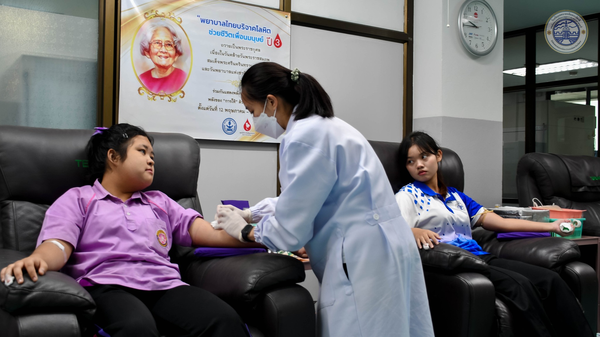 แม่สอด, ตาก – เนื่องในโอกาสวันเยาวชนแห่งชาติ ประจำปี 2568 นางสาวนิภาภรณ์ อินนาคกูล ผู้อำนวยการสถานศึกษา โรงเรียนเทศบาลเฉลิมพระเกียรติสมเด็จพระเทพรัตนราชสุดา ฯ สยามบรมราชกุมารี ได้มอบหมายให้ นางสาวจุไร บุญใบ เจ้าของโครงงานเยาวชนดีศรีอินทนิล นำคณะนักเรียนจิตอาสาเข้าร่วมกิจกรรมบริจาคโลหิต ณ โรงพยาบาลแม่สอด อำเภอแม่สอด จังหวัดตาก