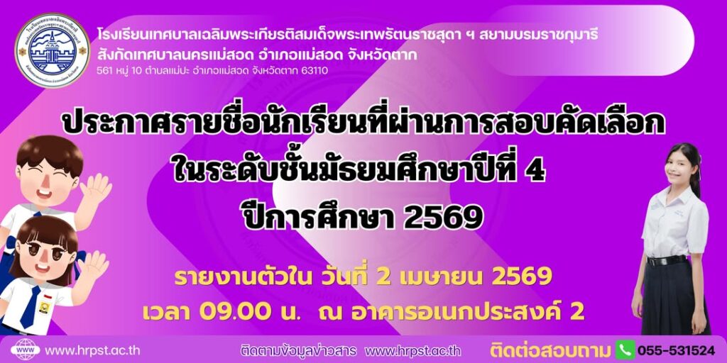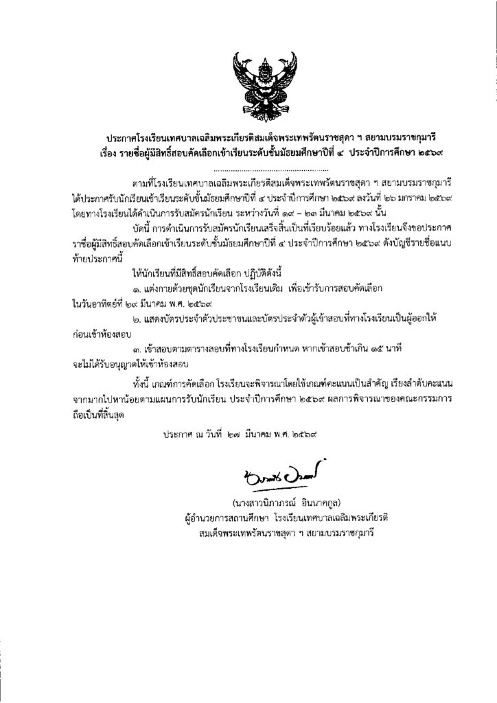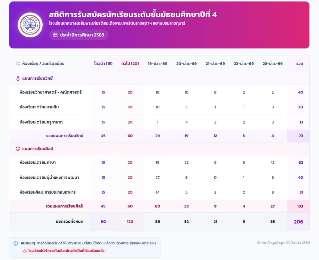 สถิติการรับสมัครนักเรียนระดับชั้นมัธยมศึกษาปีที่ 4 ปีการศึกษา 2569 โรงเรียนเทศบาลเฉลิมพระเกียรติสมเด็จพระเทพรัตนราชสุดาฯ สยามบรมราชกุมารี