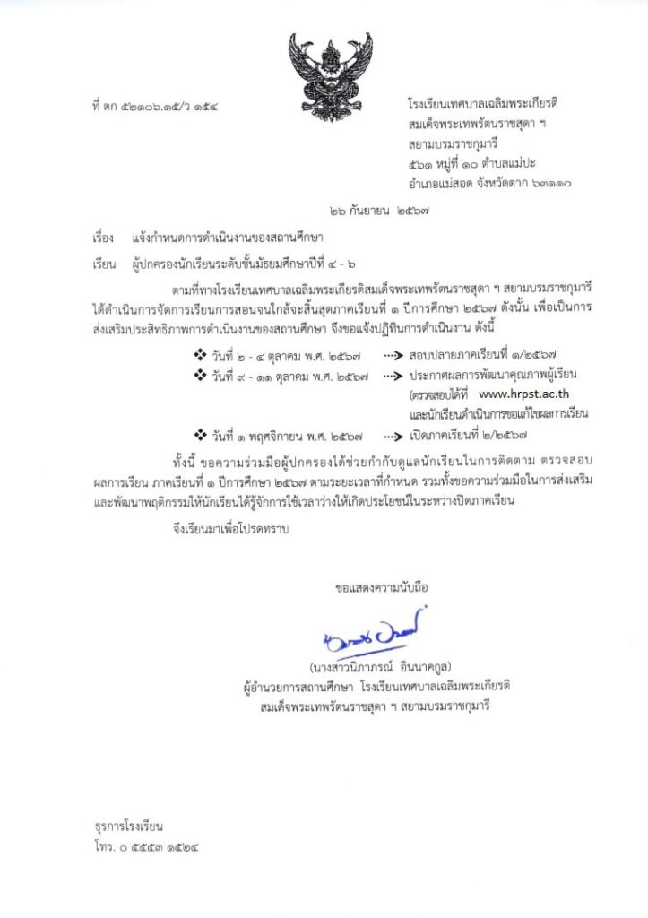 นางสาวนิภาภรณ์ อินนาคกูล ผู้อำนวยการสถานศึกษาโรงเรียนเทศบาลเฉลิมพระเกียรติสมเด็จพระเทพรัตนราชสุดา ฯ สยามบรมราชกุมารี พร้อมคณะครู นักเรียน สังกัดเทศบาลนครแม่สอด ขอขอบพระคุณท่านคณะกรรมการและผู้เกี่ยวข้องทุกท่านที่ได้ประเมินด้วยความเป็นกัลยาณมิตรและยังให้ข้อเสนอแนะ เพื่อพัฒนาสถานศึกษาให้มีประสิทธิภาพยิ่งๆขึ้นไป