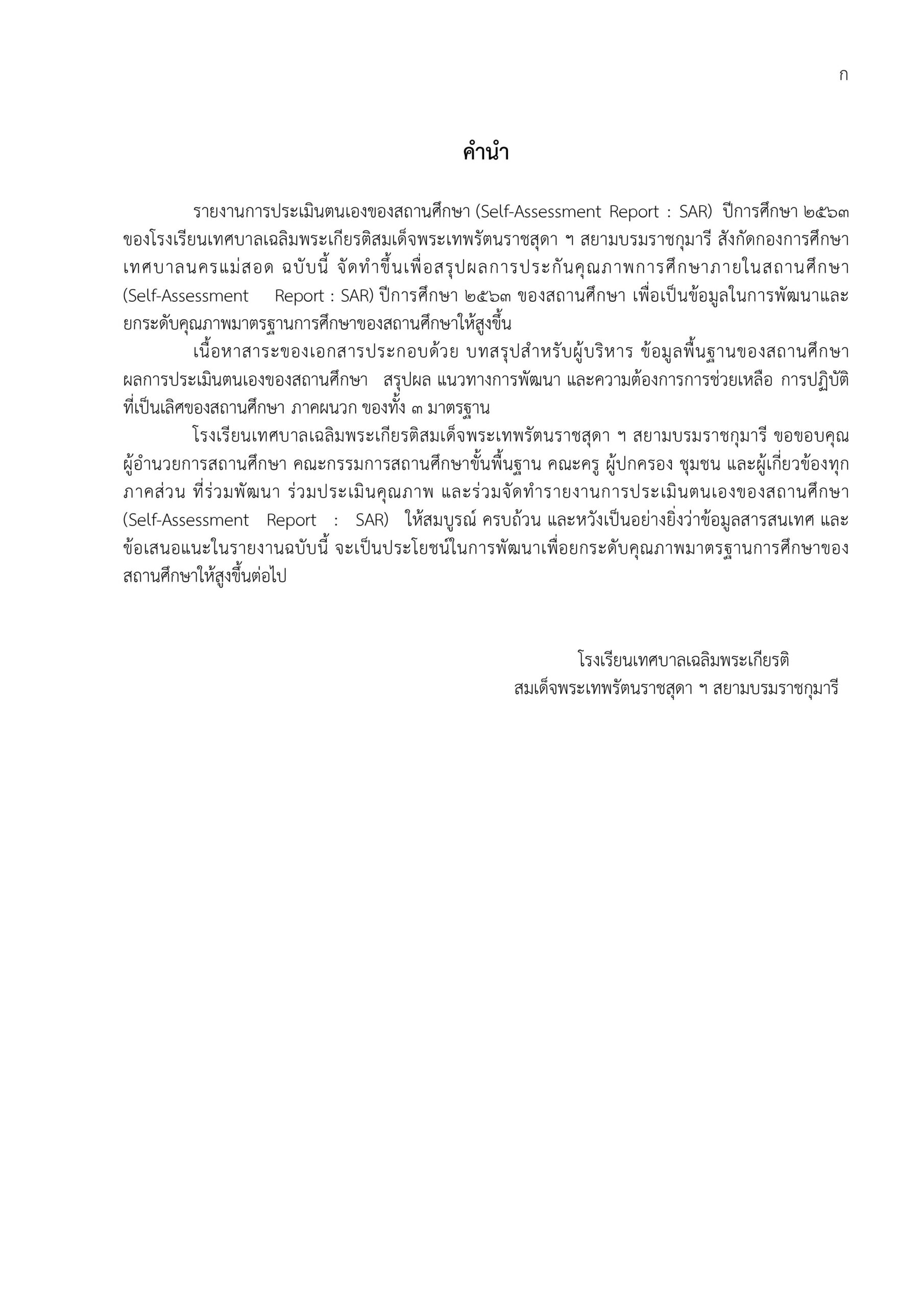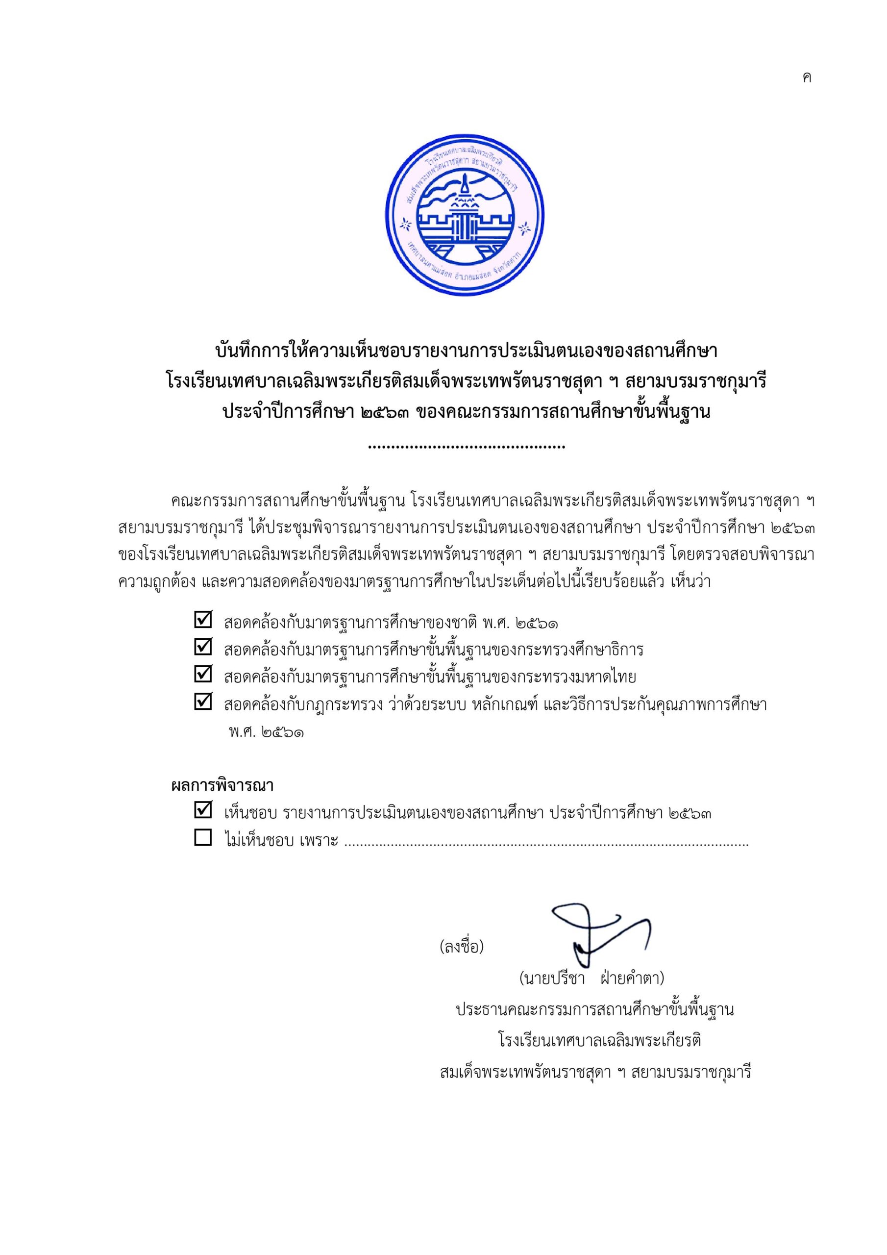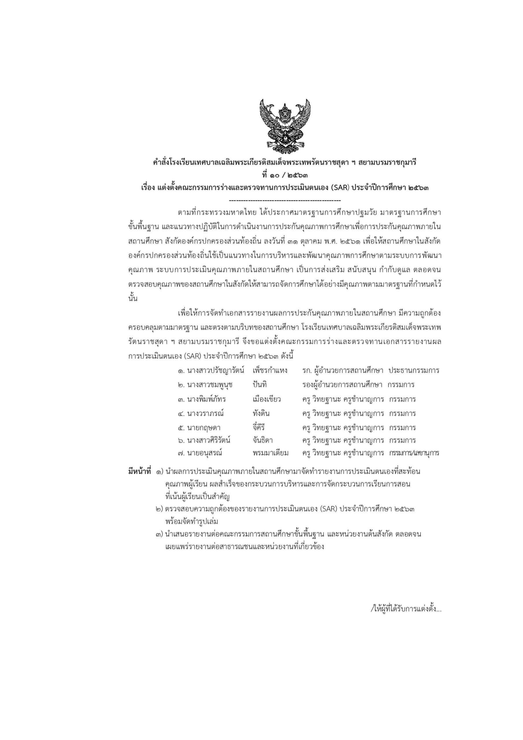 SAR ประจำปี 2563 ดาวน์โหลดไฟล์ : รร.ท.เฉลิมพระเกียรติฯ -รายงานการประเมินตนเอง (SAR) ปี 2563 (รวมเล่ม)