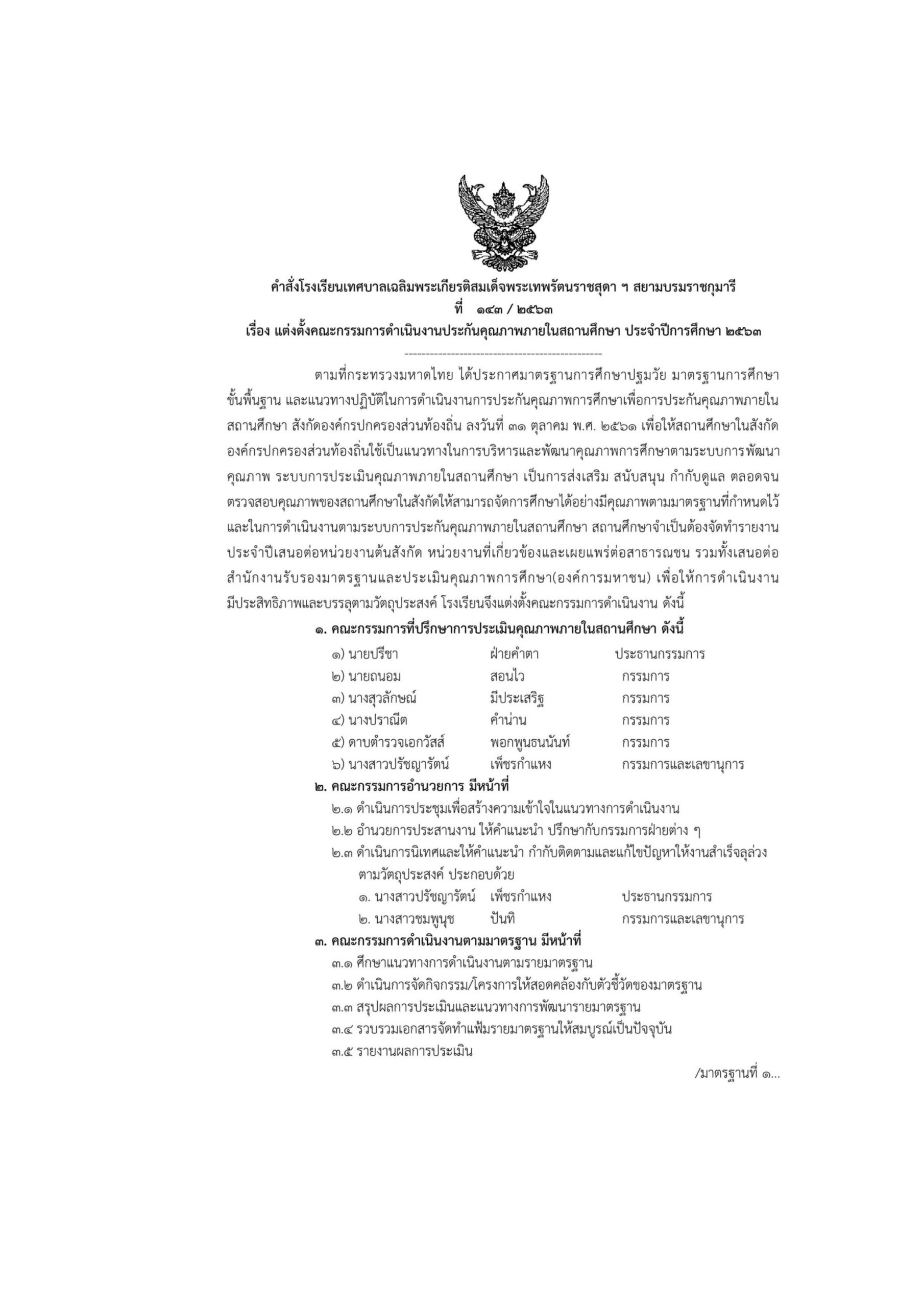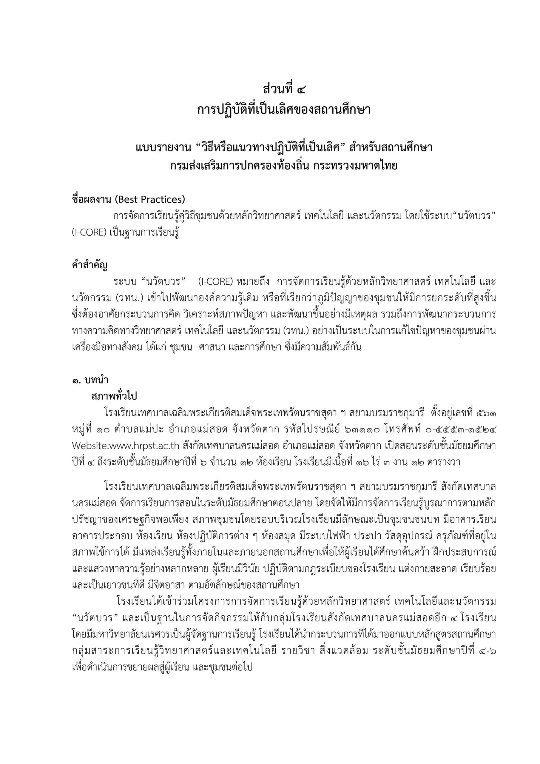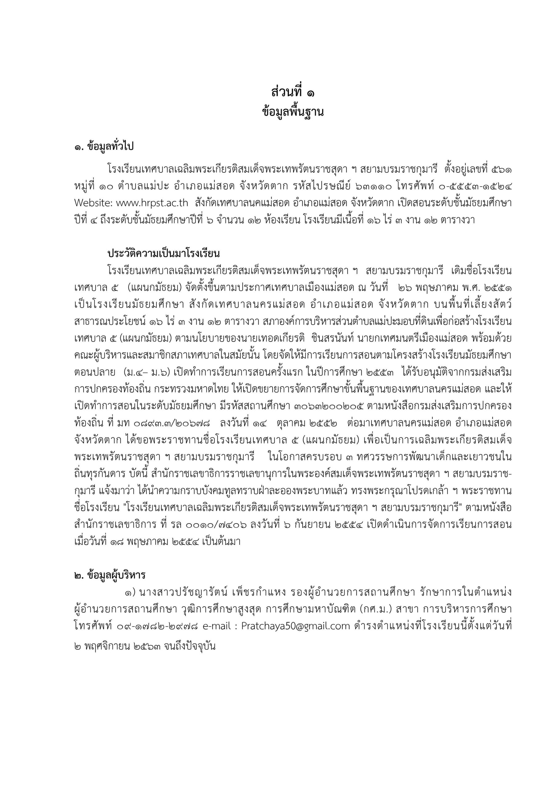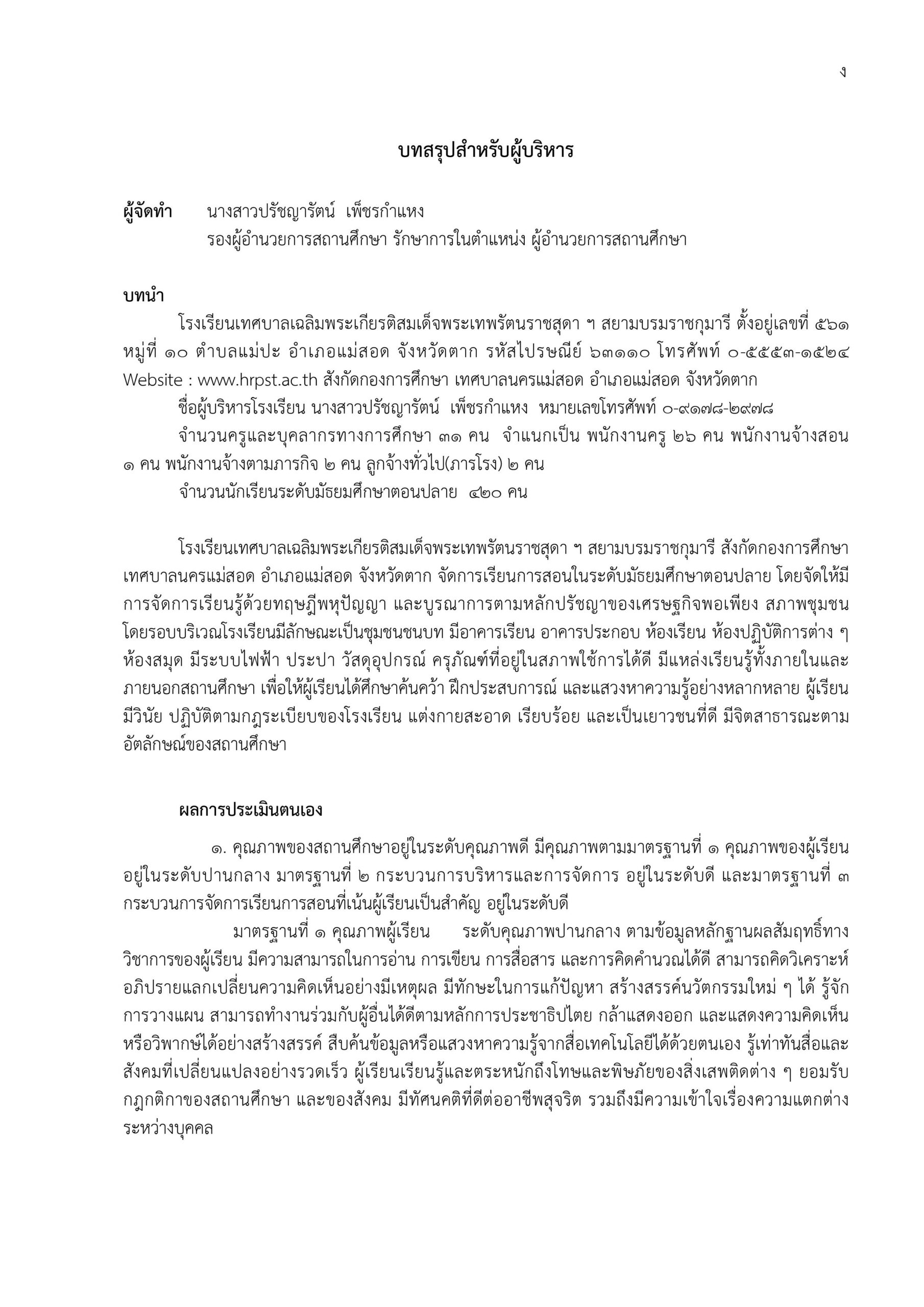 SAR ประจำปี 2563 ดาวน์โหลดไฟล์ : รร.ท.เฉลิมพระเกียรติฯ -รายงานการประเมินตนเอง (SAR) ปี 2563 (รวมเล่ม)